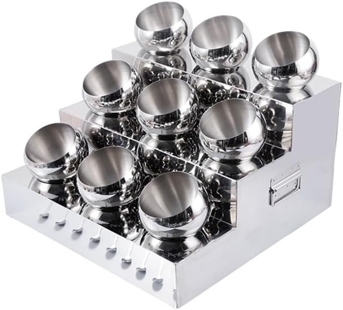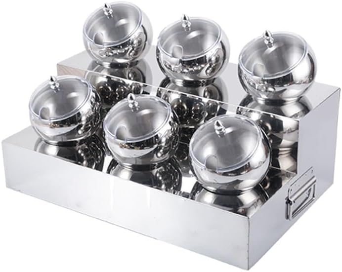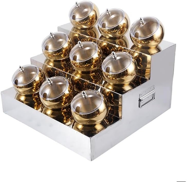 Featuresideal for placing ingredients, fit in most refrigerators, cabinets, freezers and drawersThe large capacity also eliminates the needs for frequent refilling.SpecificationName: Commercial Spice Rack Set/Toppings Containers With Lids/Stainless Steel Spice Rack SetMaterial: Stainless SteelColor: Silver , GoldSize: As shown in the pictureAccessories: As shown in the picture1cm=0.39in1in=2.5cmThe package includes:1 × Spice Organizer Stand