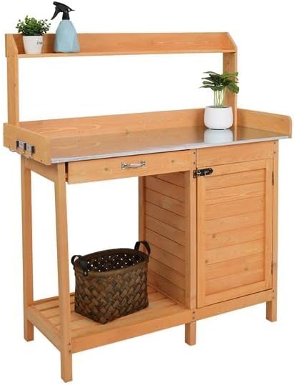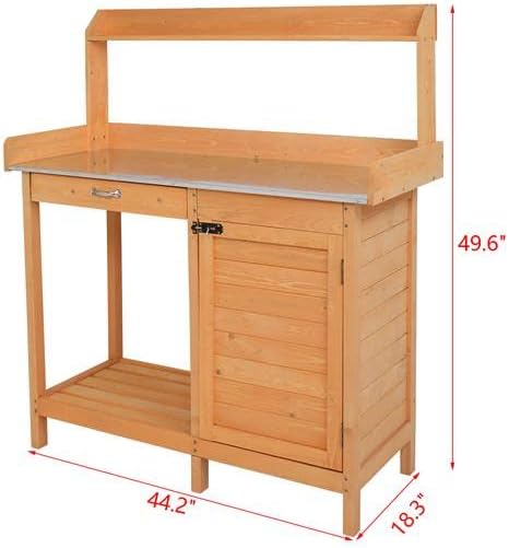 Introductions: Planting flowers and plants will make our mood better. So choose a high quality garden workbench is more important. This garden workbench is made of high quality fir material, durable and sturdy in use. It features beautiful structure, and makes it look more elegant and attractive. And it is easy to assemble, so you can use it soon. It is suitable for garden, balcony, outdoor and so on. Why not choose it to make your life more colorful! Features: 1. Made of high quality iron material 2. It features beautiful structure, and makes it look more elegant and attractive 3. It is easy to assemble, so you can use it soon 4. It is suitable for garden, balcony, outdoor and so on 5. Durable and sturdy Specifications: 1. Material: Fir 2. Style: With Drawer And Cabinet, With Galvanized Iron Desktop Drawer 3. Color: Burlywood 4. Dimensions : (44.1 x 18.1 x 49.2)" / (112 x 46 x 125)cm(L x W x H) 5. Accessories: Drawers, Hooks 6. Weight: 46.3lbs / 21kg Package Includes: 1 x Garden Workbench 1 x Manual