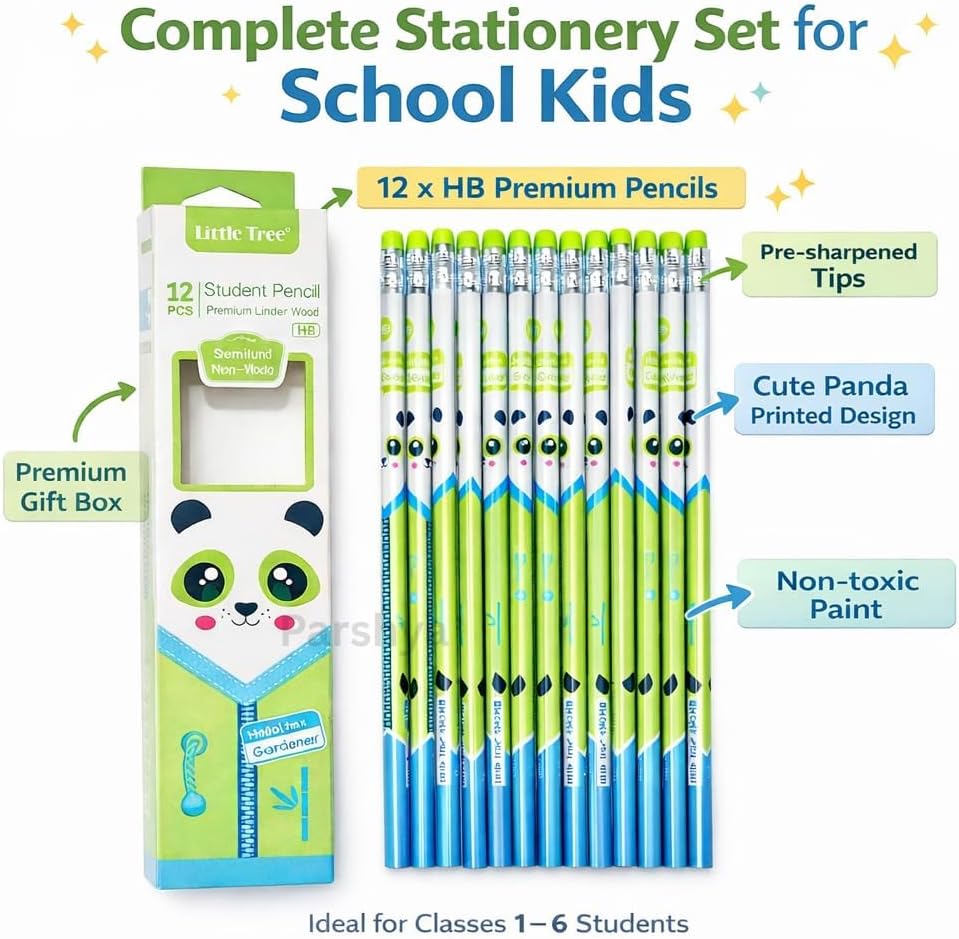 Upgrade your child’s stationery collection with the Parshya Premium HB Pencil Set. Whether it’s for a budding artist or a student heading back to school, these pencils offer the perfect blend of functionality and fun.Made from imported Linden wood, these pencils are incredibly durable and easy to sharpen. The HB Graphite core is engineered for "Super Dark" performance, ensuring that handwriting stands out clearly on any paper type. We understand that long writing sessions can be tiring, which is why our pencils feature an ergonomic triangular shape to help kids maintain a comfortable and steady grip.The highlight of this set is the collection of colorful erasers that sit right on top of the pencils! They aren't just for show—they erase cleanly without tearing the paper. This set is a top-rated choice for parents looking for high-quality school supplies or unique, budget-friendly return gifts for birthday parties.