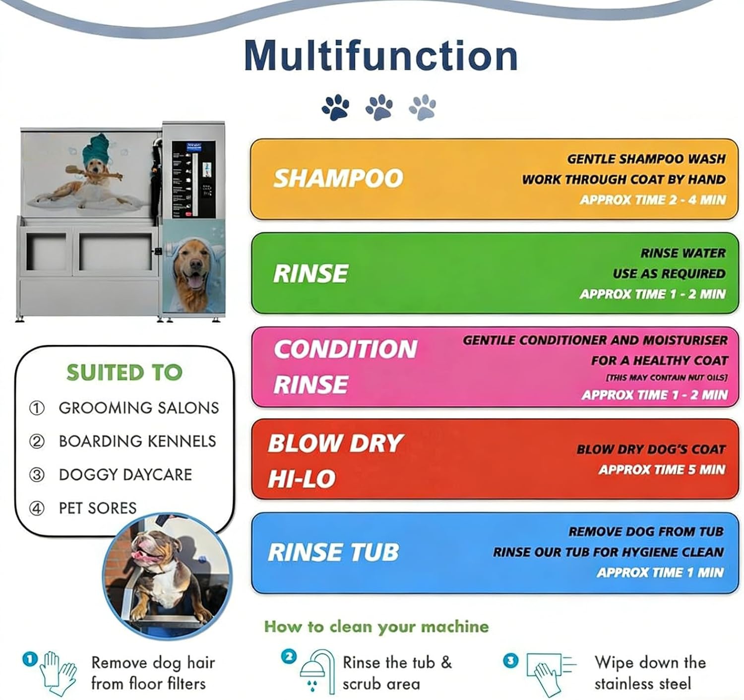 Provide a convenient and professional pet washing solution with this Commercial Self Service Dog Wash Station, designed specifically for outdoor public areas and commercial pet facilities.This durable pet washing station allows dog owners to easily clean their pets after outdoor activities, making it an excellent addition to dog parks, campgrounds, pet grooming shops and public recreation areas. The spacious wash tub design provides enough room to accommodate dogs of various sizes, ensuring a comfortable bathing experience.Constructed with heavy duty stainless steel, the structure is resistant to for long term commercial use. The smooth surface is easy to maintain and hygienic, making it ideal for high traffic environments where durability and cleanliness are essential.The unit features a professional pet bathing system including a faucet, shower sprayer and integrated drainage system. This setup allows efficient rinsing and washing while helping keep surrounding areas clean and organized.For businesses and public facilities, installing a dog wash station can greatly improve visitor satisfaction and attract pet owners to your location. Whether used in pet stores, veterinary clinics, RV parks, dog parks or outdoor recreational facilities, this commercial dog washing station offers convenience, durability and long term value.