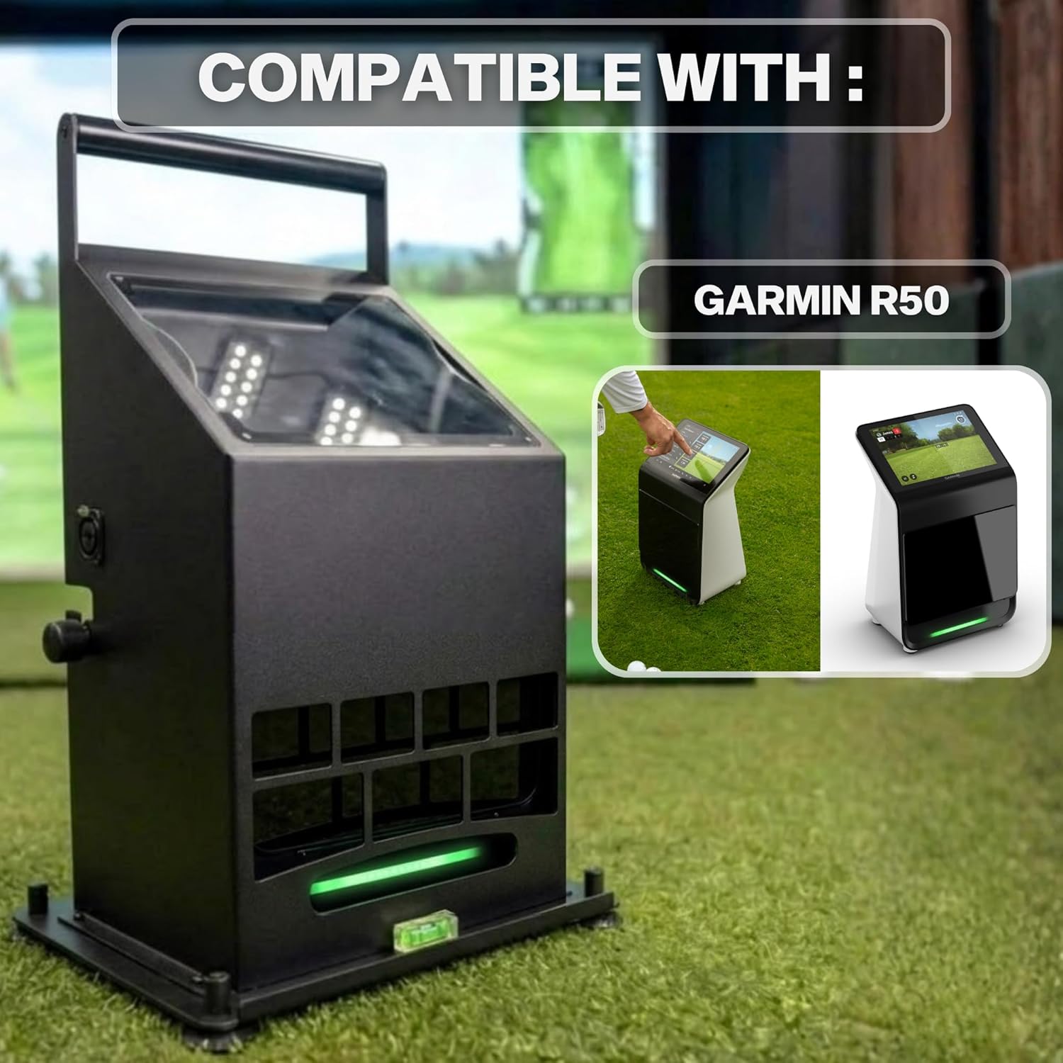 Protect Your Garmin Approach R50 the Right Way Upgrade your simulator setup with a heavy duty metal case built specifically for the Garmin Approach R50 launch monitor and golf simulator. Whether you run a dedicated golf room, garage sim, or portable hitting bay, this enclosure gives your R50 the protection and stability it needs for serious, consistent practice. Constructed from solid metal, the case features a reinforced rear locking bar that keeps your R50 firmly in place during every swing, a removable magnetic acrylic front shield that guards the camera system from mishits and debris, and adjustable foot pads with a built-in bubble level so you can dial in perfect alignment on any surface. All rear ports including HDMI, charging, and connectivity remain fully accessible at all times, so your simulator stays wired and ready without pulling the unit from its mount. The open face design keeps the R50's 10 inch built-in touchscreen completely accessible for navigating courses, reviewing ball and club metrics, and watching high-speed impact video between shots. The integrated carry handle makes it easy to move between locations without breaking down your setup. Built to protect without compromising performance, this case does not interfere with the R50's three camera photometric tracking system, barometer, or any of its 15 plus data metrics. You get the same accurate ball speed, spin rate, launch angle, club path, and carry distance readings every session. This product is a third party accessory and is not manufactured, affiliated with, sponsored by, or endorsed by Garmin Ltd. Brand names are used solely to describe compatibility and fit.