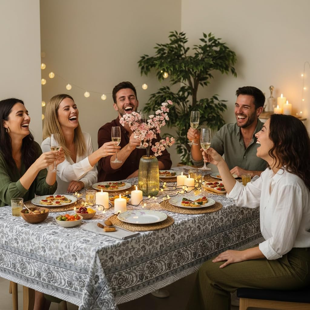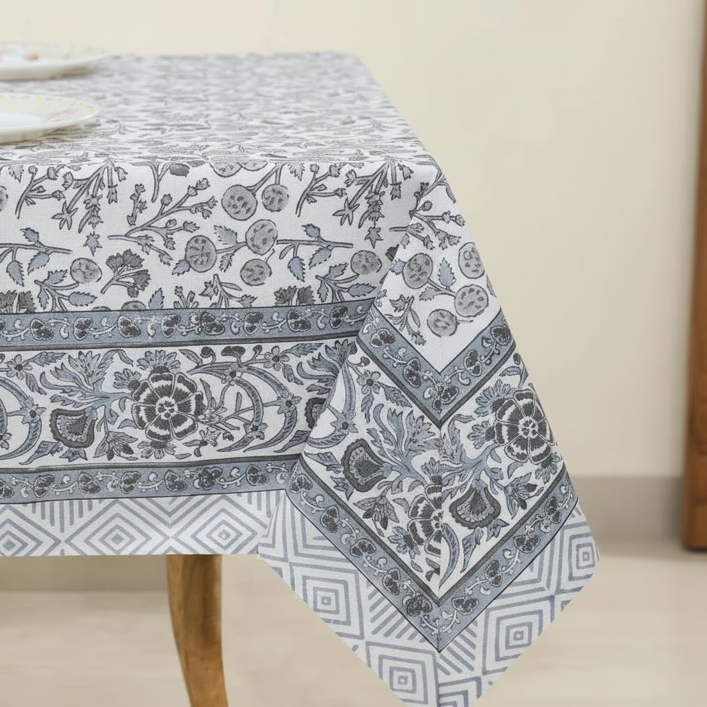 TAGAAI 100% Cotton Hand Block Printed TableclothBring timeless elegance to your dining space with TAGAAI’s premium tablecloth, handcrafted in India using traditional hand block printing techniques. Designed with a beautiful boho floral pattern, it adds a perfect farmhouse touch to your home décor.✔ 100% Pure Cotton Fabric: Made from soft, breathable and durable cotton for a natural feel and long-lasting use.✔ Authentic Indian Handmade Craft: Each tablecloth is hand block printed by skilled Indian artisans, making every piece unique with rich cultural craftsmanship.✔ Perfect Size & Table Fit: Available in multiple sizes to suit different table setups – 60" x 60" (Square) – Fits 4 Seater Tables (36–48" W x 36–48" L) 60" x 90" (Rectangle) – Fits 6 Seater Tables (36–48" W x 60–72" L) 72" x 108" (Rectangle) – Fits 6–8 Seater Tables (42–48" W x 72–84" L) 70" x 130" (Rectangle) – Fits 8 Seater Tables (42–48" W x 84–96" L)✔ Versatile Use: Ideal for dining tables, kitchen décor, parties, festive setups, outdoor gatherings, and everyday use.✔ Easy Care: Machine washable, colorfast fabric designed for easy maintenance and repeated use.Upgrade your dining experience with TAGAAI – where premium quality meets traditional Indian craftsmanship.