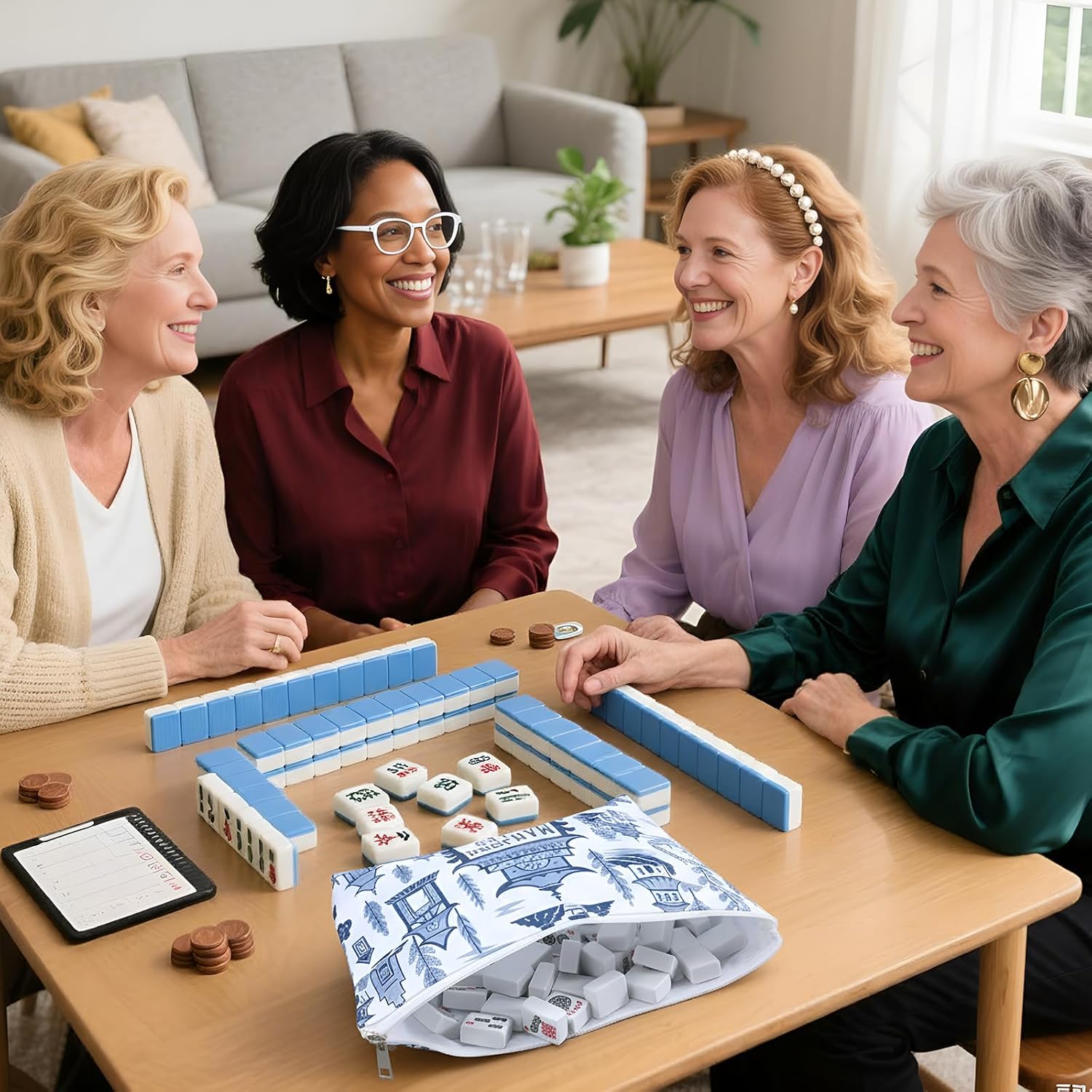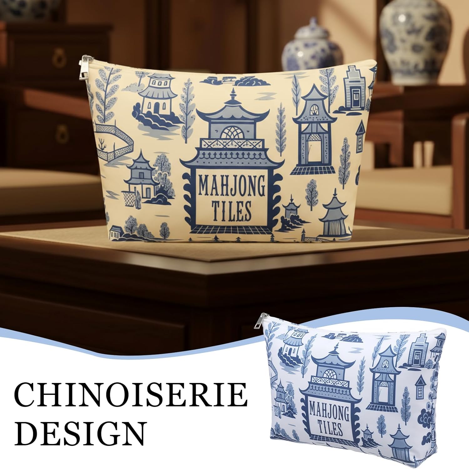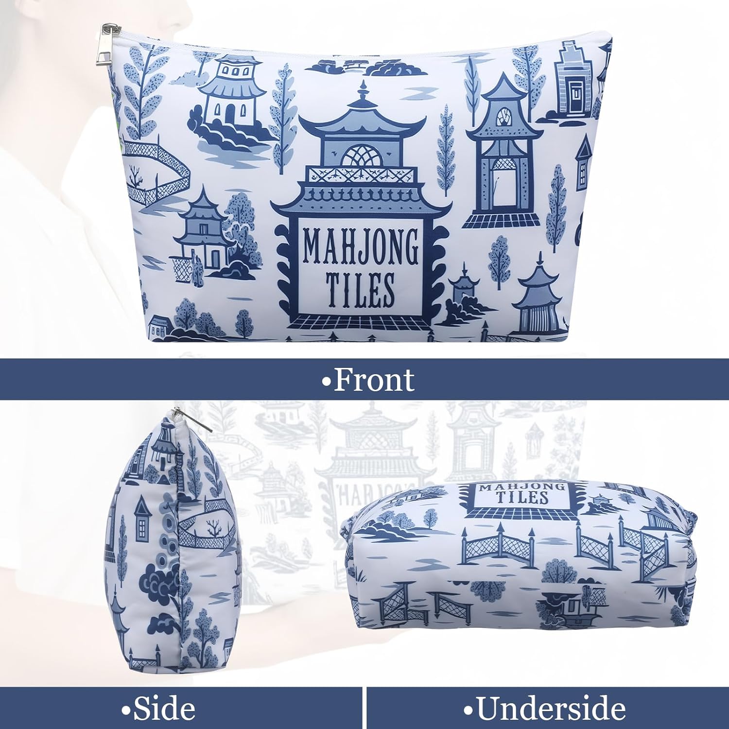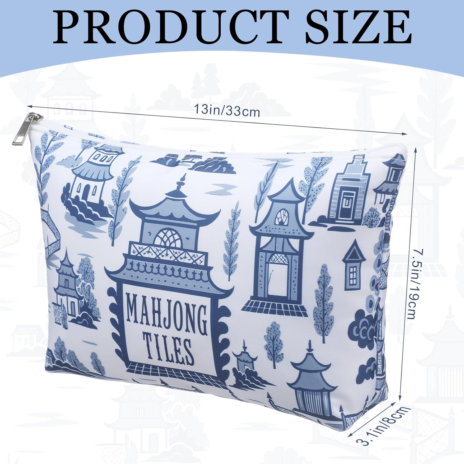 Chinoiserie Mahjong Tiles Bag - Blue Pagodas Fishtail Monogram Empty American Mahjong Tiles Bag Gifts for Women Feature: Stylish Design: This mahjong tiles bag is designed with chic blue chinoiserie pattern accents, adding a chic touch of style to your gaming sessions. Reliable & Convenient: Our chinoiserie mahjong bags are made from polyester material, safe and convenient for carrying. Specifications: Material: polyester Color: blue Size: 13" x 7.8" x 3.2" Package includes: 1 x Mahjong tiles bag Warm notes: Please allow slight errors in size due to manual measurement. Due to different angles of light and shadow effects, please allow a little color difference with the pattern