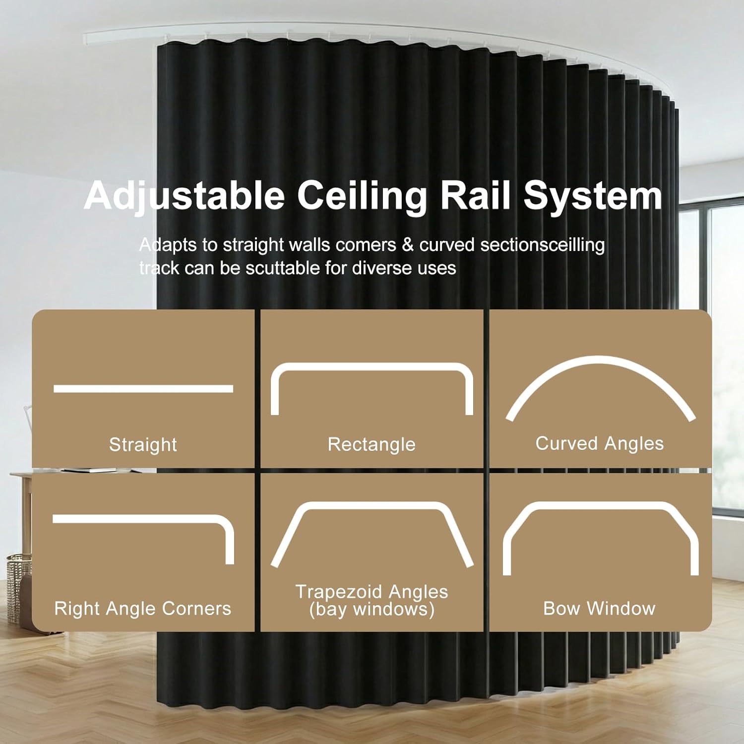 | Included Components | Curtain, Flexible Track, hook, pulley, end cap, ceiling mounting bracket. |