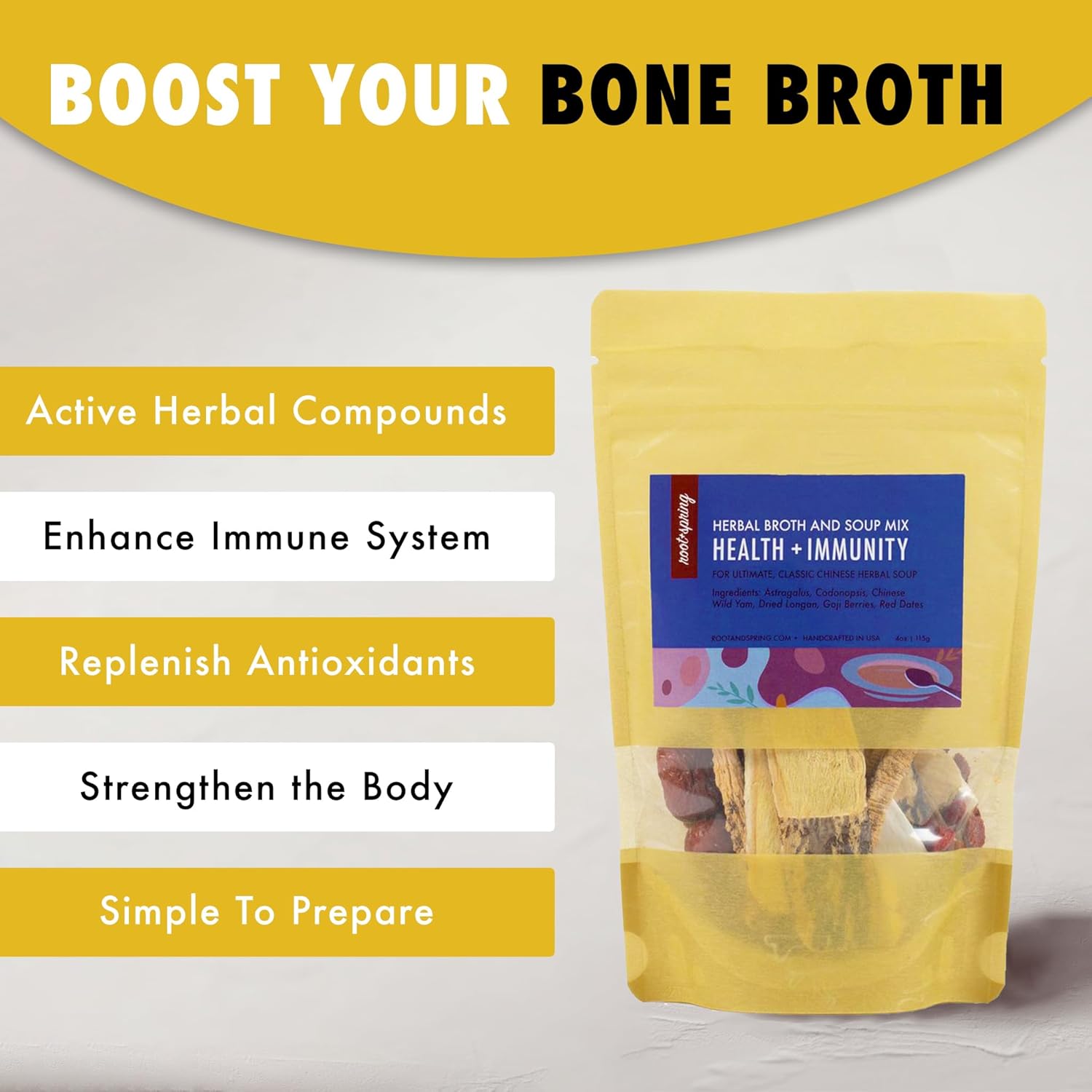 Simply rinse and add to your pot. Make this on stovetop or the slow cooker. The slow cooker is a great modern way for making herbal soups. Not only does it have an earthern inner pot, it controls the cooking temperature and achieves a steady simmer without needing close supervision. For maximum shelf life, please store herbs in a cool, dry place (refrigerator's bottom shelf is okay). Which concerns is this herbal mix good for? ✔ Weak immunity ✔ Jet lag ✔ Overall poor health and wellness ✔ Aging ✔ Difficult surgery recovery ✔ Postpartum Ingredients: Astragalus Root (Huang Qi) - Astragalus is one of only 13 herbs in the world that's labeled as scientifically "adaptogenic", which means that it has the unique capability to reduce the levels of stress hormones in your blood, helping you to “adapt” more easily to difficult environments, such as cold, a stressful work situation, or fatigue. Codonopsis Root (Dang Shen) - An excellent anti-aging herb that helps combat tiredness, chronic fatigue, stress, adrenal fatigue and digestive problems. Dried Chinese Yam (Huai Shan) - Long been credited with tons of health benefits because of its effectiveness at tonifying kidney and spleen. This herb enhances energy, aids digestion and absorption, repairs worn-out tissue, and helps alleviate bodily weakness. Dried Goji Berries (Gou Qi Zi) - Benefits the liver, which manifests in improving eyesight especially if poor eyesight is caused by malnutrition, vessel expansion, inflammation or eye strain from staring at computer screens and documents for long periods of time. Longan (Longyan) - High nutritional value, full of vitamins and contains active anti-aging ingredients. Helps to promote restful sleep, replenishing blood and Qi. Red Dates (Hong Zao) - Also known as jujubes, red dates are widely considered as the "living vitamin pill" by the Chinese. It contains Vitamin B, C, E, P, phosphorus, calcium, iron.