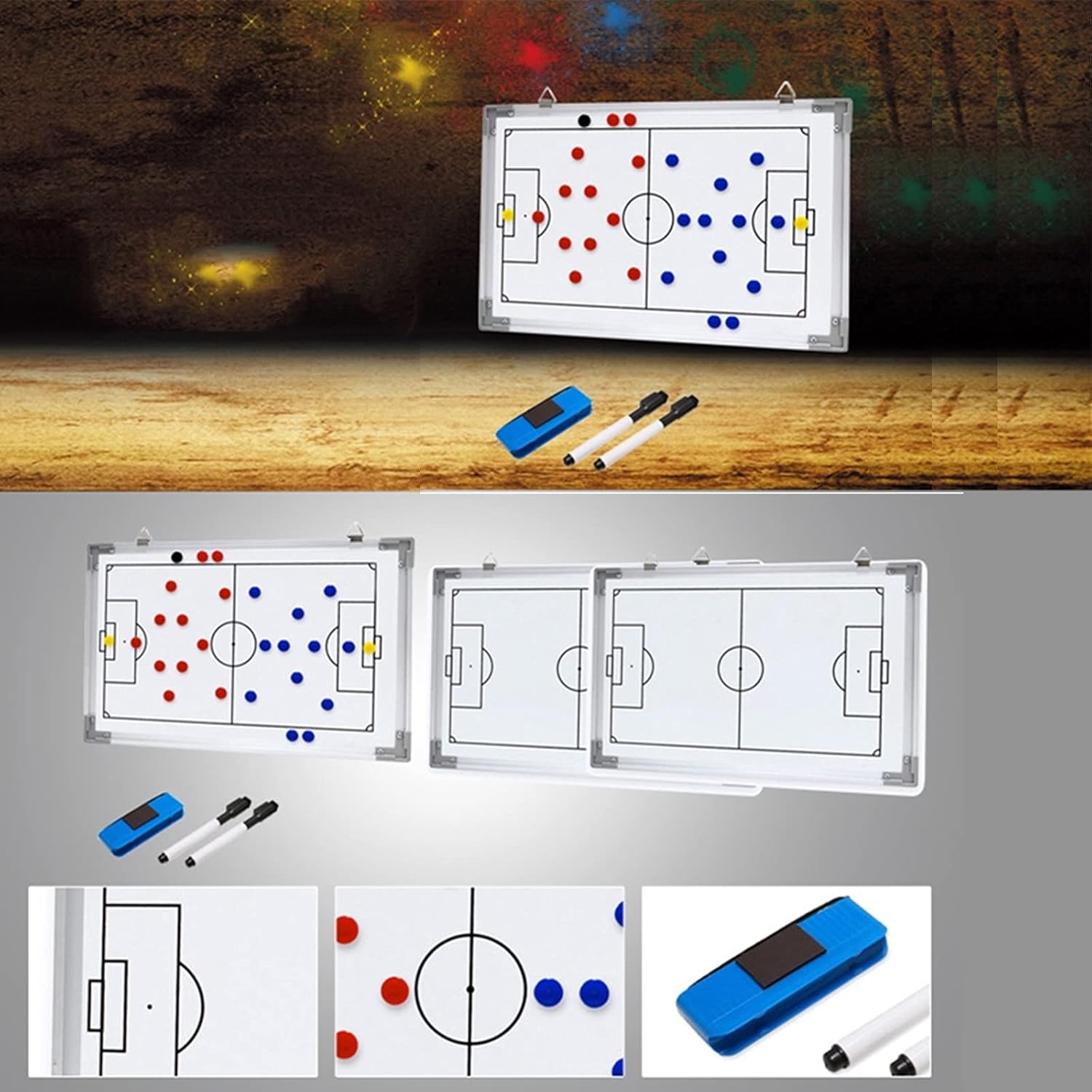 This professional-quality football manager's coaching board is the perfect tactical tool for players at all levels, can be used for football games or football game training. Features: Perfect Tactical Tool Kit: Clear and vivid for devising game strategies and substitutions, also ideal to help plan practise sessions. Helps your team come up with innovative set-piece routines that bamboozle the opposition. Double sided and Multi-purpose: Full pitch on front, half pitch on reverse. This board can be used as a hand-held coaching aid or a wall-mounted board for you to show your pupils /team strategies and game plans. High Quality and Stylish: Made of high quality PVC plastic, looks very stylish. Excellent workmanship for your comfortable experience. Excellent accessories: This double-sided clipboard has a dry-erase and magnetic board and 24 magnets representing players, referees and the ball for soccer coaches and players to master strategy. Smooth Surface: The slate prints are clear and delicate, the smooth surface is good for writing on it and is easy to clean. You can write the words directly in the table. When you do, the words can be easily cleaned. Package Included: 1 x Soccer Tactics Board 2 x Pen 1 x Eraser A set of magnets Due to different monitors, colour differences exist, please refer to the actual item received. Due to manual measurement, please allow 1-3CM error.