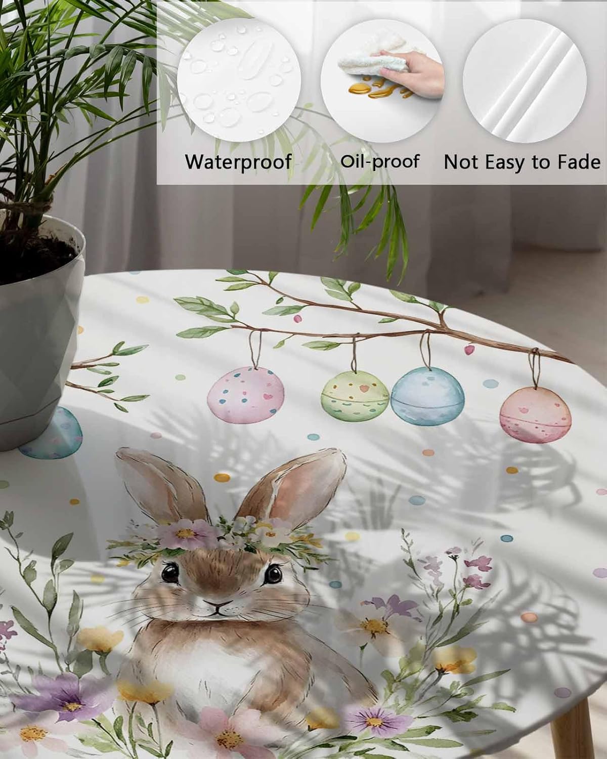 Our table cloth to accompany you to spend more happy hours with family and friends. Come to try our waterproof oilproof spillproof fitted elastic edged table cover table accessories.Fitted Elastic Edged Tablecloth Size- Small Round Fits Table up 36-44in Diameter- Middle Round Fits Table up 45-54in Diameter- Large Round Fits Table up 55-60in DiameterExcellent Table Cover for Kitchen - The elastic desk cloth have a long-lasting service life with the high quality polyster material.- If you don't want your table to get dirty and scratched while you have a dinner, the dining table cloth is a good choice for you since oil and liquid won't leak through it. It will save you time to clean your table.- You don’t need a holder clip to fix it on the table when using. Even in a heavy wind, the elastic band feature prevents winds from blow away the tablecloth.- The kitchen tablecloth can be used over and over again. There is no need to buy new ones.Tabletop Decoration- Our table wrap covers features different beautiful and subtle colors and patterns, is perfect for any style decor, such as farmhouse, cartoon, floral, retro, fashion and other styles.- The fashion desk protector creates a funny dining environment, which is suitable for indoor kitchen, home dinner, families gathering, restaurants, cafes, hotel, which is also the best partner for outdoor picnic, camping, banquet, garden party, patio BBQ and so on.- The fitted deskcloth is a charming gift for housewarming, wedding, birthday, anniversary, baby shower, Valentine's Day, St Patrick's Day, Spring Easter, Mother’s Day, Father’s Day, Independence Day. All people will be raving about it.Kind Tips- There may be slight deviations because of the different diaplays and light.- If you have any problem about our tablecloth for picnic, please don't hesitate to contact us, we will give you 100% satisfaction service.