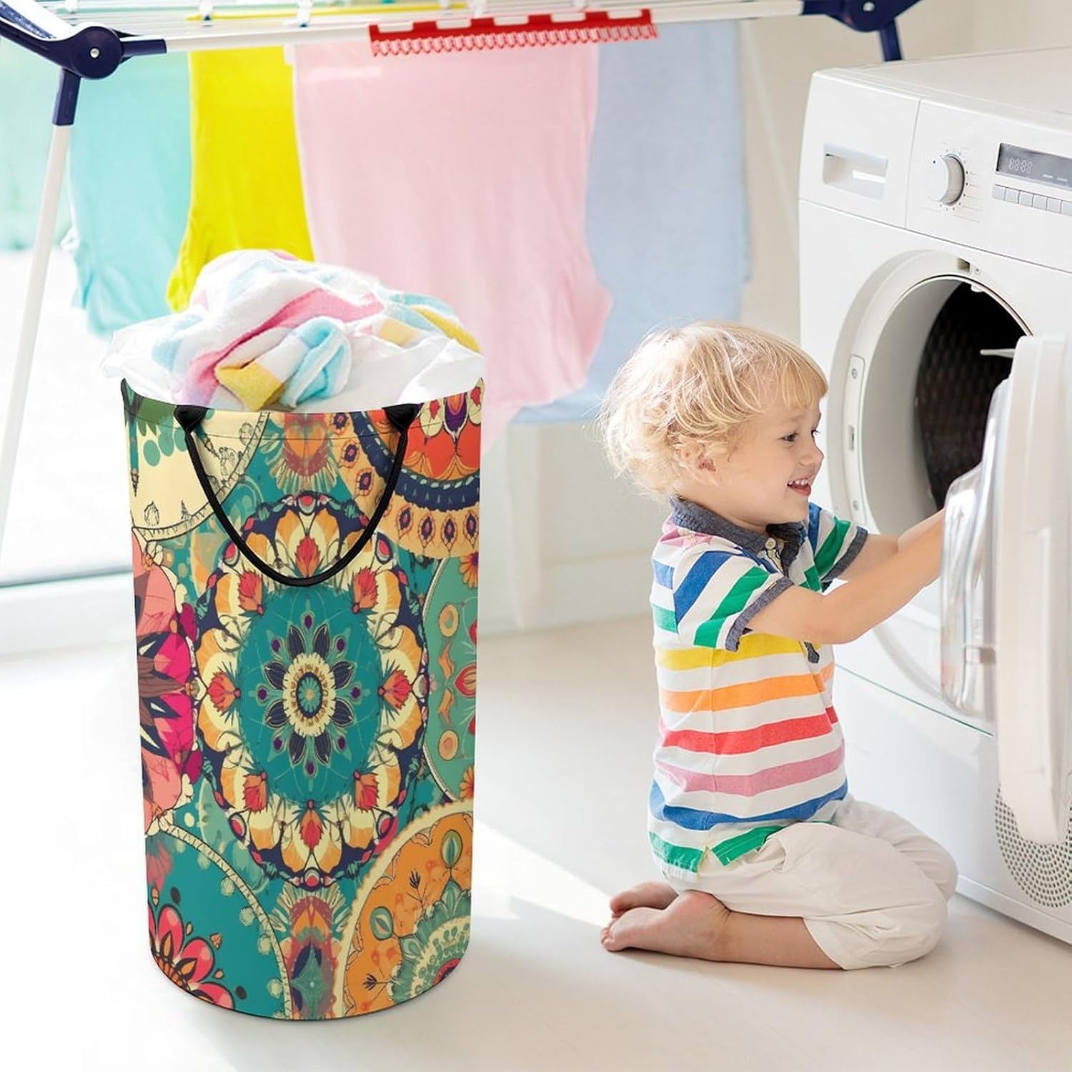 Tired of messy piles of dirty clothes cluttering your bedroom, bathroom, or laundry room? Meet our Collapsible Large Capacity Laundry Hamper, a versatile and functional storage solution designed to simplify your daily routine while elevating your home decor. Portable Washing Bin Dirty Clothes Basket for Bathroom Essentials Storage is an essential organizer for every corner of your home, from bustling family households to compact apartments, and even on-the-go adventures like camping or RV trips.With its extra-large storage space, this Round Flower Clothes Hampers for Laundry with Handles and A Removable Bag, Large Foldable Laundry Hamper for Bedroom, Bathroom Laundry Room eliminates the hassle of frequent trips to the laundry room. No more overflowing baskets or scattered items, this Round Flower hamper is built to handle your biggest storage challenges, making it a must-have for busy lifestyles. Large & Tall Collapsible Laundry Basket, Clothes Hamper Easy to Carry, Dirty Hampers for Bedroom, Bathroom reduces clutter, saves time, and adds a touch of organization to every room, all while being easy to store and transport.