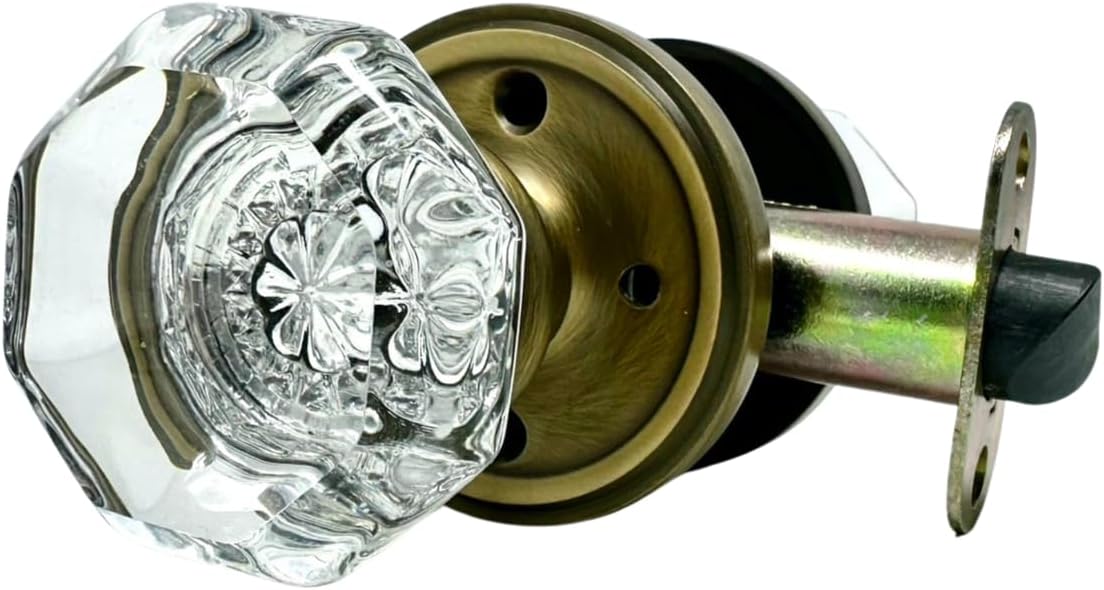 These octagonal glass knobs from Rousso's Reproductions are the perfect way to add a touch of elegance and sophistication to your home or office. The sparkling octogan glass knobs are lead free and crystal clear, and they are mounted on a solid brass base connected to the rosette, which means there are no set screws, no wiggling knobs, and no loose parts. The premium latch mechanism provides a smooth, secure, and turn, making these knobs easy to use and long-lasting. Whether you're looking for a replacement for old, worn-out knobs or want to update your furniture with a new, crisp look, these octagonal glass knobs are a great choice. They are easy to install and come with all the necessary hardware for a quick and easy installation.