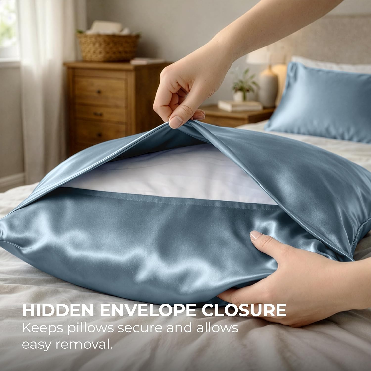 #1 Satin Sheets Top Rated Bedding Collections! Sateen Luxe Weave - A lustrous, closely woven ultra-soft, smooth and shiny Satin fabric 100% Microfiber - Soft Sateen Weave Fitted Bottom Sheets with Deep Pockets and Extra Strong Elastic A luxurious sleep begins between the sheets. Our gorgeous, ultra soft Queen satin sheets are made simply and ethically. Each satin microfiber sheet set delivers a soft feel and durable construction for the ultimate bedroom experience. They’re perfect for refreshing your living space with a pop of color, or as an elegant essential for your new home. This quality is easy to feel when you dive into cool sheets in your favorite hue or lay your head on Pure Bedding satin sheet set with pillowcases. Despite our dedication to incredible craftsmanship and the best materials, our high-quality linens carry a similar range to that of discount sheets. Deep pockets and a silky sateen weave deliver ease of use and a fashion look, while revolutionary new dyes offer lush, lasting color. Climb into bed and enjoy the smooth feel of satin or silk sheets. From twin size sheets to deep pocket king sheets, each luxurious satin sheets set will deliver comfort, ease, and style. Fit: Pocket depth: 15”. Fits mattresses up to 15” Dimensions: Twin: Flat sheet: 66”x102”. Fitted sheet: 39”x75”x15”. Pillowcase (1): 20”x30”. Full: Flat sheet: 84”x97”. Fitted sheet: 54”x75”x15”. Pillowcases (2): 20”x30”. Queen: Flat sheet: 90”x102”. Fitted sheet: 60”x80”x15”. Pillowcases (2): 20”x30”. King: Flat sheet: 108”x102”. Fitted sheet: 78”x80”x15”. Pillowcases (2): 20”x40”. California/Cal King: Flat sheet: 102”x108”. Fitted sheet: 72”x84”x15”. Pillowcases (2): 20”x40”. Queen 2 Piece Satin Pillowcase Set: Pillowcase (2): 20”x30”. King 2 Piece Satin Pillowcase Set: Pillowcase (2): 20”x40”.