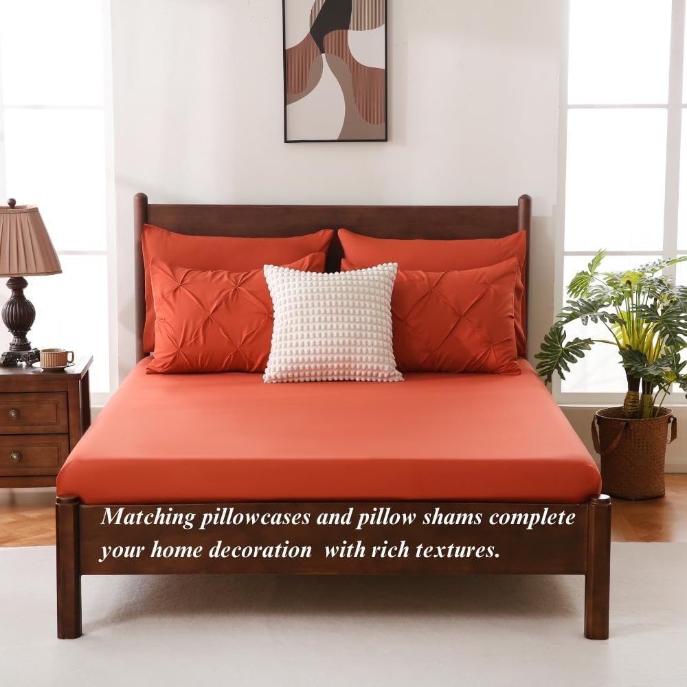 Elevate your bedroom with this elegant 7-piece bedding set. The sophisticated pinch pleat design and classic geometric pattern create a sophisticated look, while the microfiber blend comforter delivers cozy warmth without the weight. The brushed microfiber cover offers exceptional softness and comfort, and the premium fabric resists fading, shrinking, and seam slippage after washing. This inclusive set includes a comforter, pillowcases, pillow shams, fitted sheet, and flat sheet, making it the perfect choice for a cozy and stylish bedroom.