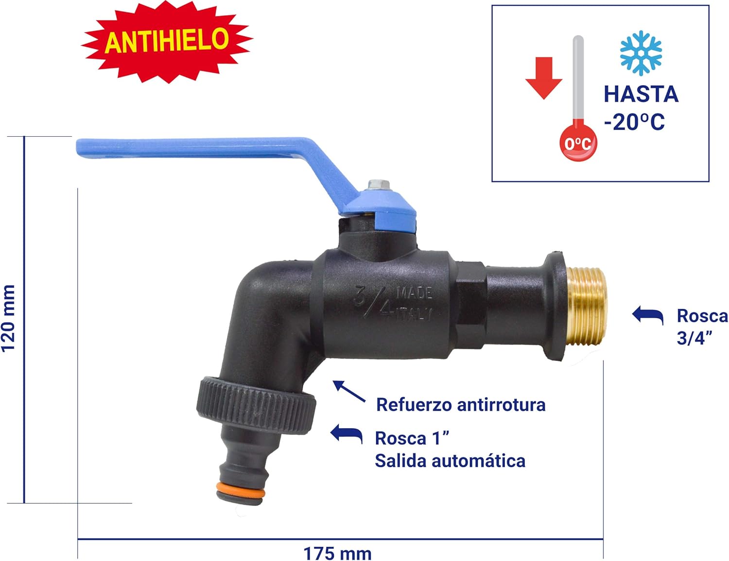 Tap area anti-frost 3/4 polypropylene black, half blue plastic with automatic takes