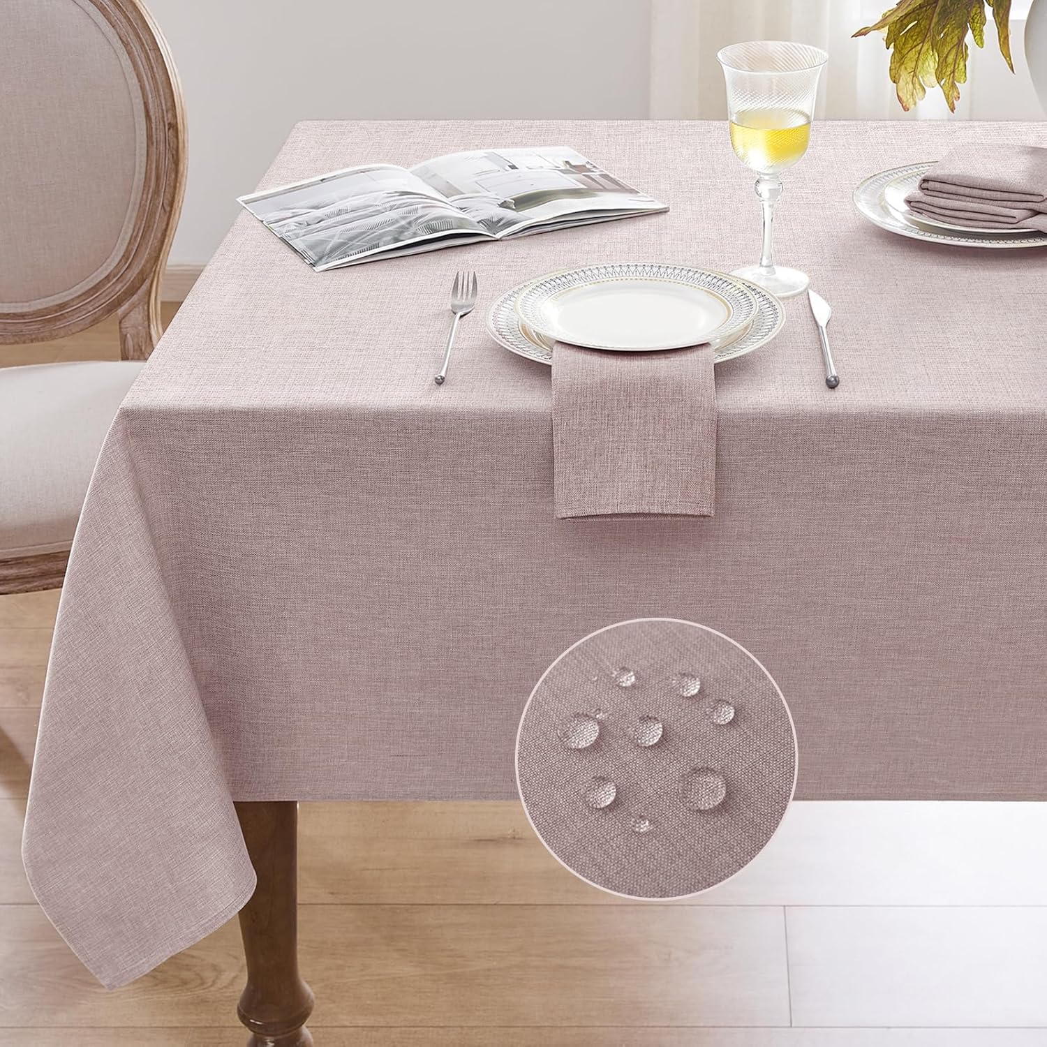 Bring warmth, texture, and practicality to your table with this versatile linen-look tablecloth, perfect for everyday use and special occasions. Premium Linen-Look Fabric Crafted from durable linen-look material, it offers a soft, natural woven texture without the roughness of real linen. Odor-free and comfortable to the touch, it complements popular North American décor styles, including farmhouse, rustic, vintage, and modern. Effortlessly elevate your table while keeping daily use stress-free. Water-Resistant & Heat-Safe Designed for real-life dining, the surface is treated to resist water and most spills, making cleanup quick and easy. Heat-safe fabric allows hot plates and serving dishes to be placed on the table, helping protect your tabletop during meals, gatherings, and parties. Multiple Sizes & Table Shapes Available for rectangular and banquet-style tables. For the best drape, select a tablecloth at least 20 inches longer than your table length (about 10 inches on each side) for an elegant overhang. Neutral & Versatile Colors Choose from Sage Green, Beige, Ivory, Brown, Denim Blue, Navy Blue, Dark Gray, and Light Gray. These colors mix effortlessly with seasonal décor, dinnerware, and centerpieces, making it ideal for casual or styled table settings. Indoor & Outdoor Use Perfect for kitchens, dining rooms, cafés, patios, backyard BBQs, picnics, and special events. It transitions seamlessly from everyday meals to larger gatherings. Ideal for Holidays & Year-Round Use Enhance festive settings for Thanksgiving, Christmas, Easter, birthdays, and family celebrations. Lightweight yet durable, it works beautifully across all seasons. Easy Care & Support Machine or hand washable, resistant to wrinkles, fading, and pilling, and quick-drying. Our customer support team is ready to help with sizing, care, or any questions for a worry-free experience.