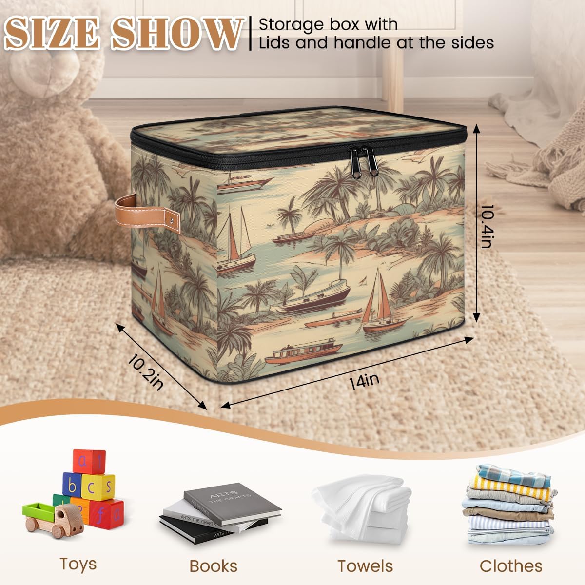Storage Bins Size: 15(L)x 11(W)x 9.5(H)inches. Large capacity storage basket, can hold a lot of things, save space, also can prevent things messy, keep the home and room clean and orderly. Multi-function: Foldable storage box can be used as closet organizers, toy storage, shelf basket, blanket basket, storage box, laundry basket, wardrobe basket, clothes storage bins, bathroom baskets, under bed storage containers and so on. Can store toys, blankets, books, clothes, quilts, socks, shoes, all kinds of items, can be put anywhere you want. Various Occasions: Storage boxes are suitable for closet, shelf, bedroom, closet, kid's room, bathroom, nursery, laundry room, living room, dormitory, apartment, office, locker room, pantry, balcony, living room, kitchen, game room and other occasions. Practical Gifts: The clothes organizer is a thoughtful choice for birthday parties or Christmas, Mother's Day, Father's Day, Valentine's Day, Easter, etc., for mom, dad, him or her, friends or colleagues.
