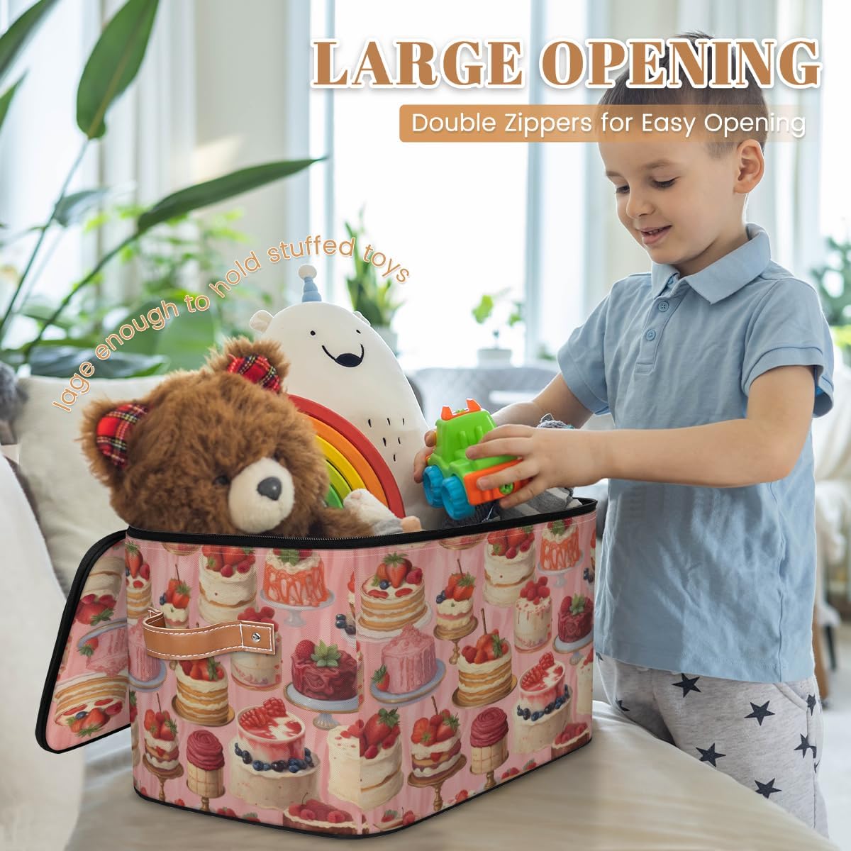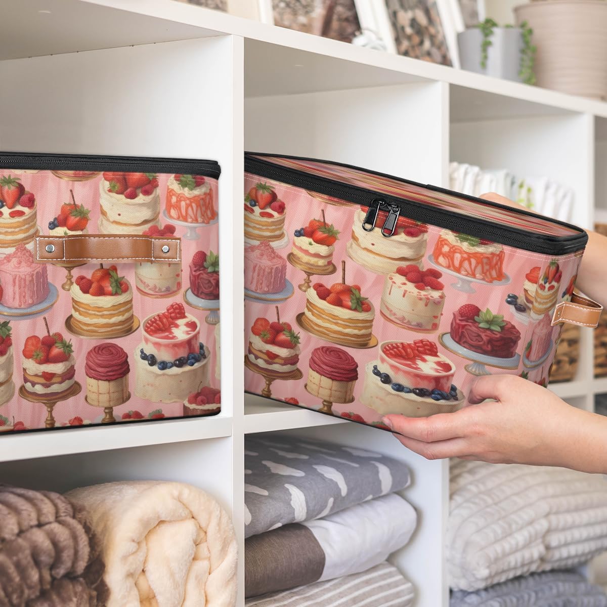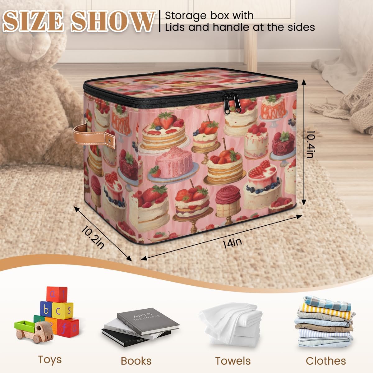 Storage Bins Size: 15(L)x 11(W)x 9.5(H)inches. Large capacity storage basket, can hold a lot of things, save space, also can prevent things messy, keep the home and room clean and orderly. Multi-function: Foldable storage box can be used as closet organizers, toy storage, shelf basket, blanket basket, storage box, laundry basket, wardrobe basket, clothes storage bins, bathroom baskets, under bed storage containers and so on. Can store toys, blankets, books, clothes, quilts, socks, shoes, all kinds of items, can be put anywhere you want. Various Occasions: Storage boxes are suitable for closet, shelf, bedroom, closet, kid's room, bathroom, nursery, laundry room, living room, dormitory, apartment, office, locker room, pantry, balcony, living room, kitchen, game room and other occasions. Practical Gifts: The clothes organizer is a thoughtful choice for birthday parties or Christmas, Mother's Day, Father's Day, Valentine's Day, Easter, etc., for mom, dad, him or her, friends or colleagues.