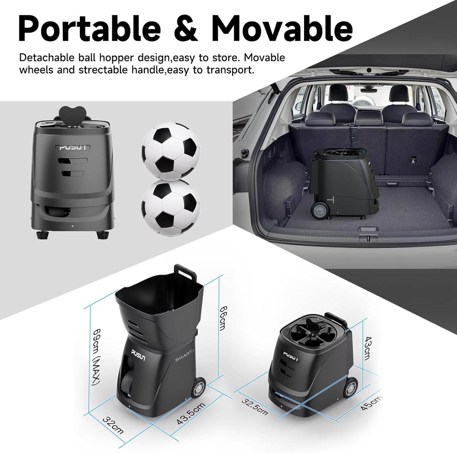 | Included Components | Battery Set(battery*1, battery bag*1, connection cords*2, charger*1), PT-Smart Tennis Ball Machine, Remote, User Warranty |