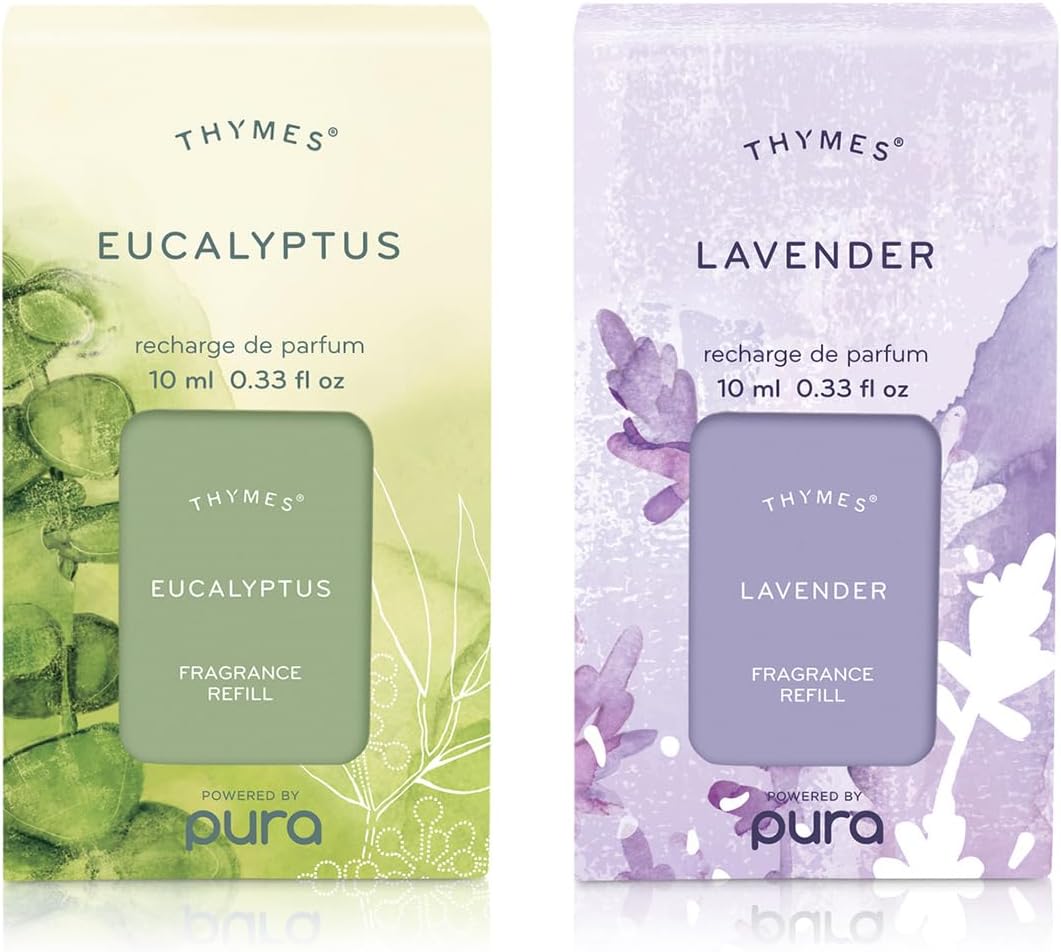 The Pura 4 smart fragrance diffuser uses innovative smart features paired with premium, clean scents to give you the most modern, customized, and high-end scenting experience possible. Lavender & Eucalyptus Pura Scents - Our Thymes Eucalyptus has notes of invigorating eucalyptus oil, crisp Italian lemon, energizing petitgrain, sweet bergamot, lively lemongrass, and lush fir. Our Thymes Lavender is a natural calming aid with notes of velvety lavender, warm rosewood, fresh clary sage, and earthy violet. Safe & Clean Scents - All Pura 4 smart fragrance diffuser scents are created with clean ingredients. Formulated without parabens, phthalates, dichlorobenzene, mineral oil, DEA, petroleum, formaldehyde or propylene. Smart Features - Adjust fragrance intensity, set schedules and timers, and more in the Pura app. Simply insert your smart fragrance vial and Pura 4 automatically detects the fragrance, creating a seamless swapping experience. Enjoy a consistent, long-lasting fragrance experience based on the temperature in your home with new adaptive diffusion.
