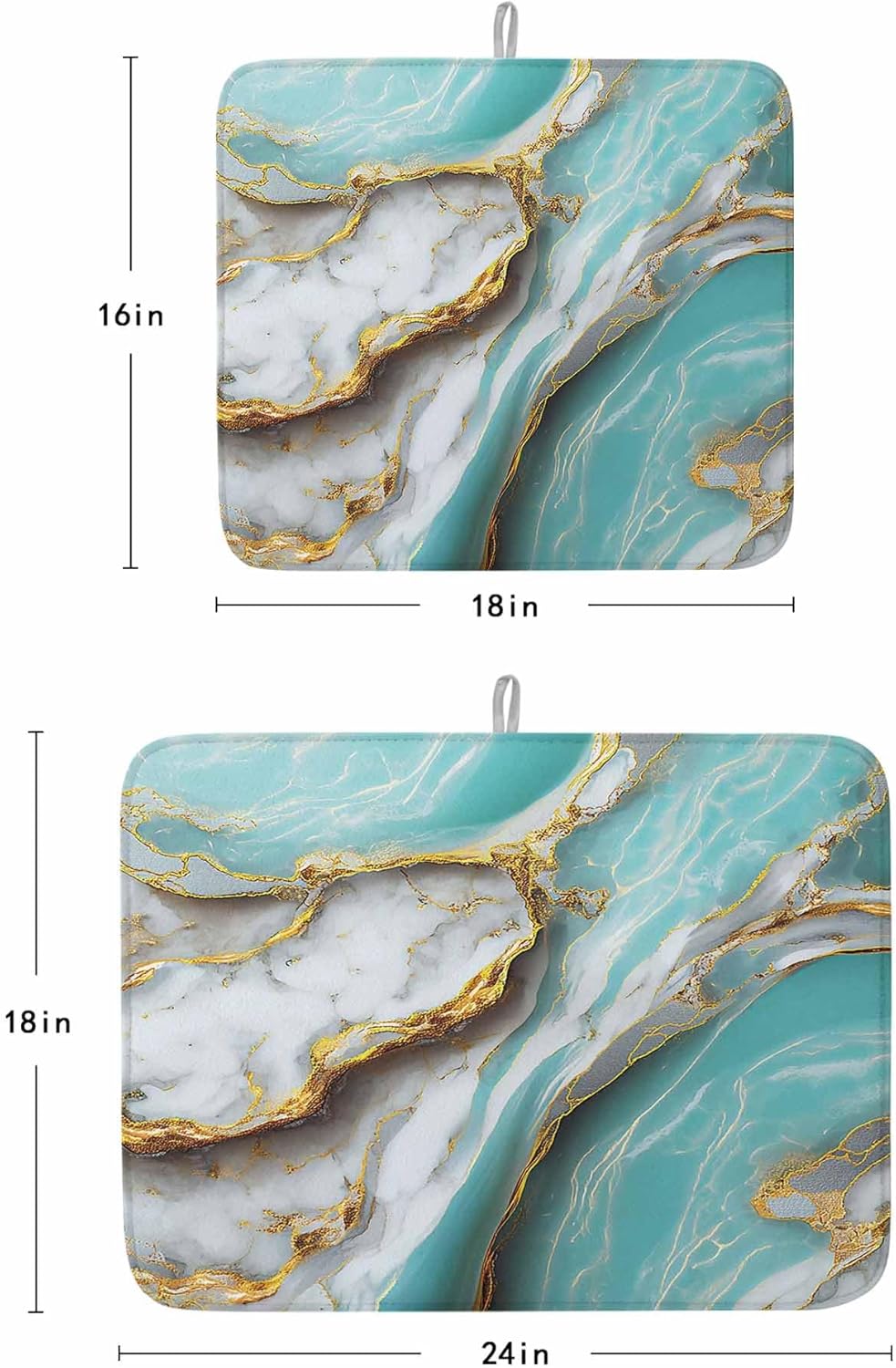 Material: Polyester microfiber Size Options: 16x18 inch, 1 pack 16x18 inch, 2 pack 18x24 inch, 1 pack 18x24 inch, 2 pack Super Absorbent Microfiber: Our Dish Drying Mat is crafted from high-quality microfiber, making it incredibly absorbent. This feature ensures your kitchen counter stays dry and hygienic, effectively soaking up water from washed dishes. Versatile Sizes: Whether you have a compact kitchen or need extra space for larger dish loads, our mats come in sizes that cater to every need. The larger size is perfect for pots, pans, and plates, while the smaller size suits cups and cutlery. Machine Washable: Easy to clean, these mats are machine washable. This reusable feature makes them comfortable choice for your kitchen. Compact and Stylish: Designed to seamlessly blend into any kitchen aesthetic, our dish drying mats are not only functional but also add a touch of style to your countertop. Easily foldable, they can be stored away to free up space when not in use. Multi-use: Beyond drying dishes, they serve as excellent coffee bar mats, protecting surfaces from spills and stains, or as a cushioned resting spot for kitchen gadgets. Usage Scenarios Daily Kitchen Use: Transform your kitchen counter into a dry, organized, and sanitary space. Ideal for the fast-paced environment of home kitchens, where efficiency and cleanliness are paramount. Coffee Bar Accents: Perfect for placing under your espresso machine or coffee maker, not only to absorb drips but also to add a sophisticated touch to your coffee station. Gift Idea: A thoughtful and practical gift for anyone setting up a new home, avid cooks, or coffee enthusiasts.