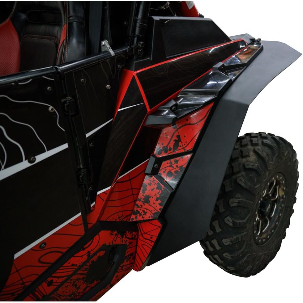 The Tusk UTV Quick Release Fender Flare Kit offers increased protection in the cab from mud, dirt, and debris. These strong and durable fender flares easily install to extend the OEM fenders to give you that much more protection for muddy rides and are quickly removed when not necessary. This is an excellent addition if you are running a wider offset wheel. This kit includes 4 fender flares and quick release hardware for easy installation. When in need of parts and accessories for your dirt bike, ATV, or UTV, think TUSK!