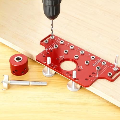 Introducing our all-metal Shelf Pin Jig and Hinge Jig, a versatile tool designed for seamless cabinet hardware installation and precise hole drilling. Perfectly suited for both professional craftsmen and DIY enthusiasts, this compact jig simplifies tasks such as installing adjustable shelves, building kitchen cabinets, and mounting concealed hinges. **Key Advantages:** - **Enhanced Efficiency:** Save valuable time by drilling up to 7 holes simultaneously with our durable 1/4โ and 5mm drill bits. The included stop collar ensures consistent depth for every hole. Use the positioning pin to extend drilling across panels effortlessly, making it ideal for creating bookshelves, pegboard walls, or efficient garage storage. - **Concealed Hinge Mastery:** Achieve professional results with concealed hinge installations. This jig accommodates 35mm Euro hinges with 3-6mm edge adjustments and includes screw guides for precise pilot hole drilling in cabinet doors and furniture frames. - **Durable Construction:** Made from heavy-duty aluminum alloy, our jig is built to withstand the rigors of daily use while resisting wear and tear. Its lightweight design allows for easy transport in the included storage bag, making it a favorite among carpenters, DIYers, and renovation professionals. **Ideal For:** - DIYers creating custom cabinets, floating shelves, or innovative storage solutions - Woodworkers drilling adjustable peg holes for versatile furniture designs - Homeowners enhancing kitchens, garages, or closets with modern concealed hinge cabinets **Included in the Kit:** - 1x All-Metal Jig - 1x 1/4 Drill Bit - 1x 5mm Drill Bit - 1x Stop Collar - 1x Positioning Pin Elevate your woodworking projects with our all-metal Shelf Pin Jig and Hinge Jigโyour reliable partner for precise installations and a polished finish!