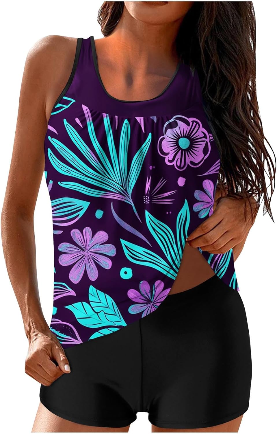 Product Description: This tankini swimsuit combines a stylish tank-style top with full coverage to ensure both comfort and confidence. The soft scoop neck and mid-waist cut offer a flattering fit that enhances your silhouette while providing ample support for all body types.
