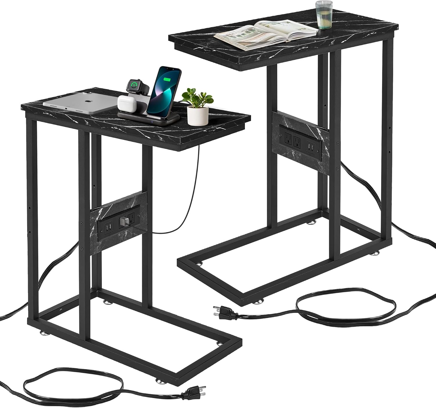 ◆VECELO C-shaped End Side Table: Ideal for Storage Organization Durable ConstructionWith Charging Station & Power OutletsDecorative AppealProfessional Brand Service◆Specifications: Color: Brown/Gold/Black/Black Marble Dimension: 19" D x 11" W x 24" H [Please check carefully about this table size] Compact C-shaped End Table: Manufactured MDF Board and Charge StationVersatile Use Table: be used as a nightstand, end table, side table, bedside tableAdjustable feet: Keep stable on the uneven floor and anti-scratches Video for Easy Assembly: Assenbly video has been uploaded for help VECELO Brand Guarantee: Any problems about our product, please contact us.◆Package Includes: ★1 x C-shaped End Table ★1 x Instruction (clear assembly instruction, please search) ★1 x Assembly Kit◆Tips: ✔ Please read the instructions carefully before assembly. ✔Ensure all parts and screws are firmly attached before use. ✔For set of 2, maybe the parcels were sent separately. If you haven't found another package, please kindly wait 2 more days. Once the 2-Day-Waiting does not work, please contact our support for help immediately.