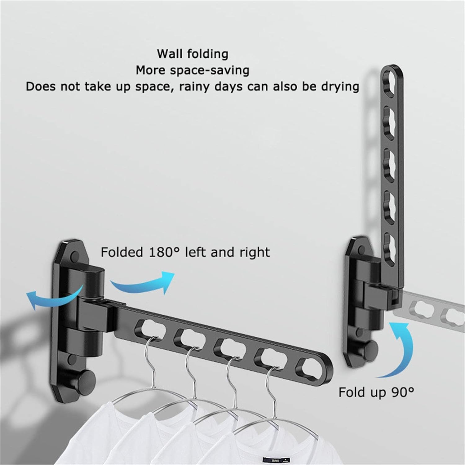 Description: - The hanger is made very well and sturdy. Clothes can get very heavy, these racks when mounted correctly would not have any problems holding the weight of the clothes. The garment hangers have a very nice finish as well. - Folding Save Space: Rotate clothes rack gives you the convenience as it provides extra storage space.It can rotate down 90 degrees, so you can put it down to save space when you don't use it. Key product features: - A sturdy clothes-hanging rack that gives you of space to hang clothes on when you need it and folds away to almost nothing when you don't need it! - A super space-saving device! To give you an extra rack to hang your guest's coats when guests visit, to help you sort clothing when the seasons change, or whenever else you sometimes need extra hanger space. - Gives you an "instant clothes closet" anywhere; perfect for small spaces, out-of-the-way corners, bathrooms, on a porch or deck, and much more. Nicely holds shirts or pairs of pants straight from the washer and keeps them separated far enough from each other to dry and preventing wrinkles. Sturdy enough to hold jeans, sweaters and jackets wet or dry. Product Specifications: Color: Black Material: Aluminum alloy Size: s shown Package: 1 x Cloth Hanger Holders and Mounting Accessories