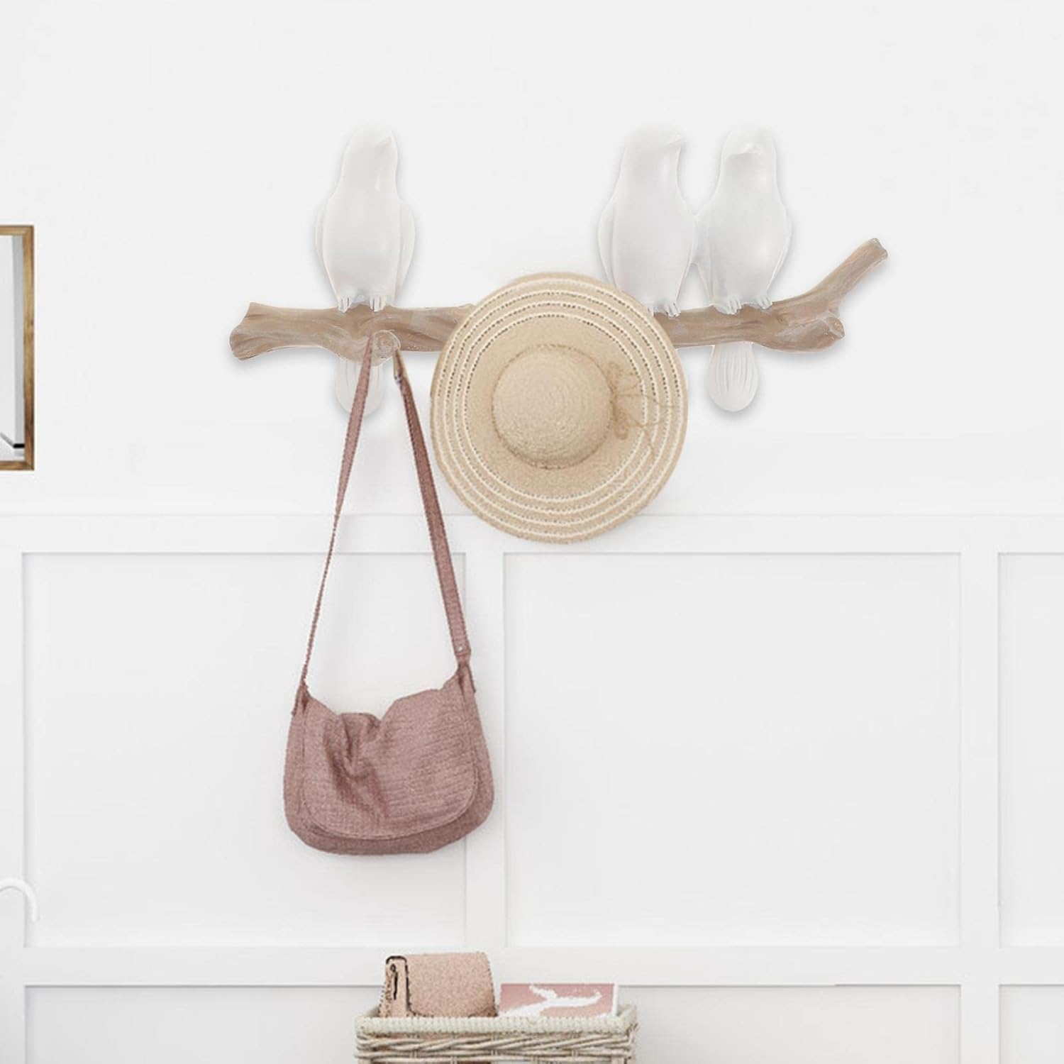 Wall Mounted Rack Resin Bird on Tree Branch Hangers Coat Hooks Hats Keys Towels and Clothing, Bird