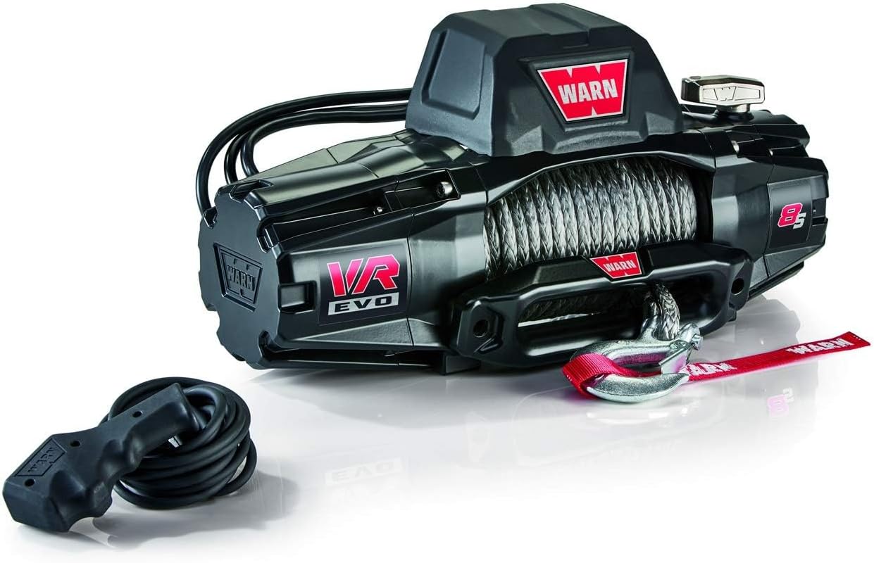 The WARN ER EVO 8-S Standard Duty Winch with a synthetic rope has an 8, 000 lb. capacity and is ideal on 2-door jeeps and lighter SUVs for everyday pulls and getting yourself out of trouble. The high-performance Albright contactor delivers maximum reliability and is inside the control pack that can be relocated for low-profile installations. Included is a state-of-the-art wired remote. This winch features an IP68-rated waterproof construction that keeps the elements out, and a durable, one-piece cast-aluminum tie-plate for extra strength and durability. A powerful series-wound motor and planetary gear train deliver faster line speed under load, with lower amp draw. These winches are designed, engineered, and tested in the USA by WARN engineers and have a limited lifetime for mechanical parts and 7 years on the electrical. With its fast line-speed and lower amp draw, the VR EVO series of winches are the hardest-working standard-duty winches we’ve ever made, with tactical styling that looks great up front and at a price that won’t pull you out of your budget.