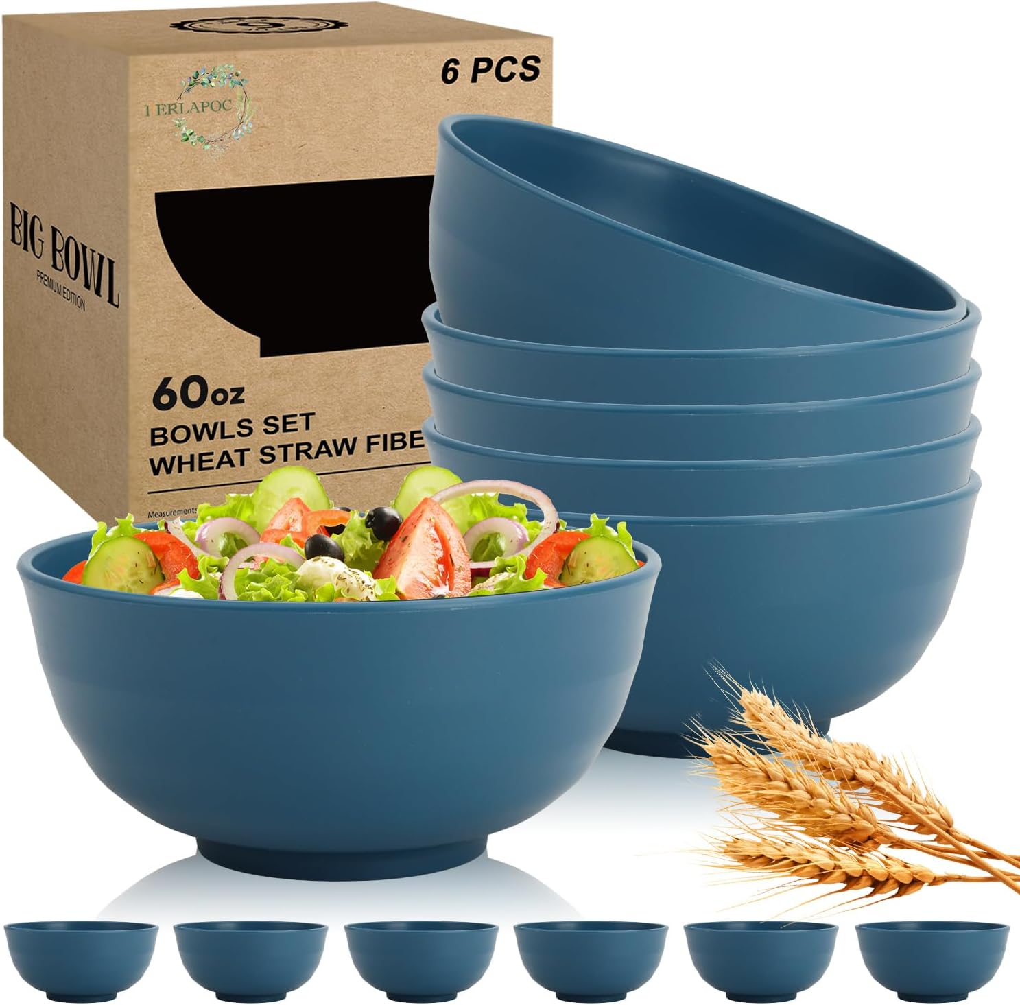 | Included Components | 60 OZ Wheat Straw Bowl x 6 |