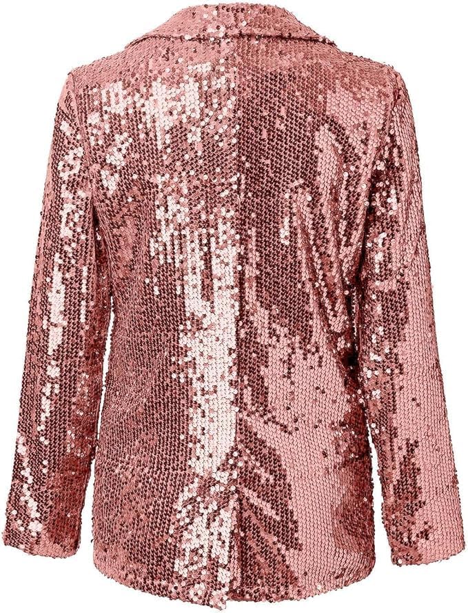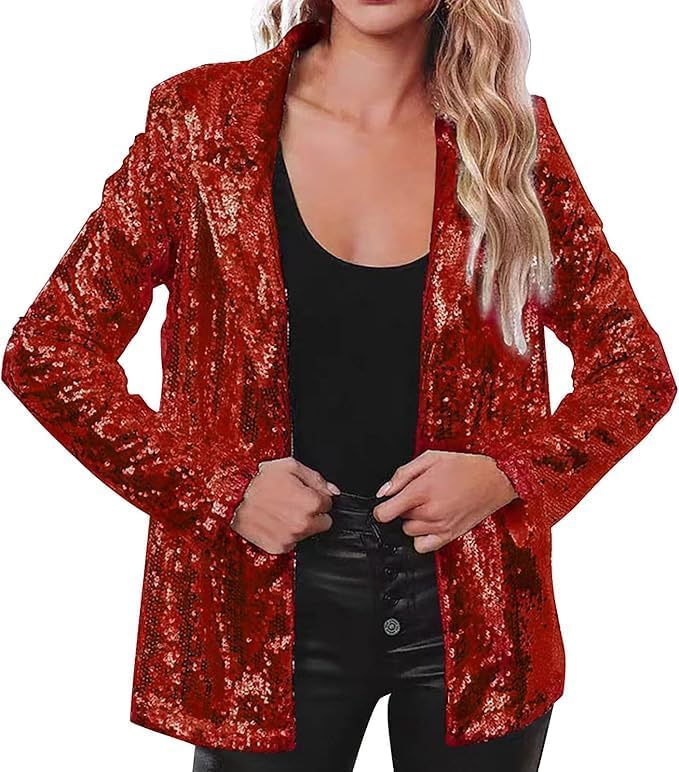 BEHWORE Elevate your style with this stunning sequin blazer jacket for women! This eye-catching piece features allover sequin embellishments that catch the light beautifully, adding a glamorous touch to any outfit. Perfect for parties, events, weddings, or a night out on the town, this blazer is sure to turn heads. With a lapel collar and long sleeves, it offers a polished and sophisticated look. Available in a range of vibrant colors including black, golden, hot pink, silver, blue, yellow, pink, camel, red, and dark brown, you can choose the shade that best suits your personal style. Pair it with your favorite dress or jeans and heels for a dazzling ensemble. Crafted with care, this sequin blazer jacket is a versatile and stylish addition to any fashionista's wardrobe.
