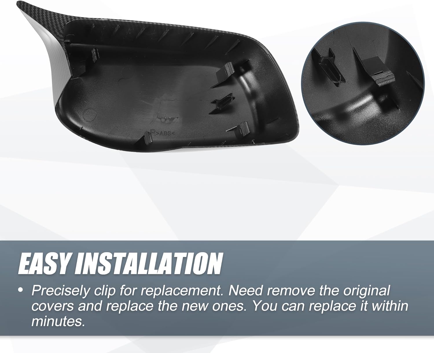Features:Durable, not easy to fade under any rigorous condition.Easy to install. Direct replacement for your factory ones. Need to remove your factory covers and replace the new ones.Effectively protect your rearview mirror from damage.Enhance your exterior style.Firmly, not easy to fall off.This is a non-OEM product, accessory only!Specification:Condition: Brand NewMaterial: ABS PlasticColor: Black Carbon FiberSize: 25x12.5cm / 9.84"x4.92"(L*H)OE Number:51167078359/51167078360Fitment:for BMW E60 E61 5 Series 2003-2007 525i 525xi 530i 530xi 545i 550ifor BMW E63 E64 6 Series 2003-2007 645Ci 650i 650CiNote: Not for M5Installation:These are replacement mirror cover units, you need to remove the old mirror caps and replace them with these new ones, and clip into place for simple installation. Made to stay applied and brilliant for the life of your vehicle.Package List:1 Pair Door Rearview Mirror Cover Caps (Driver Side & Passenger Side)1 Pcs Removal Tool
