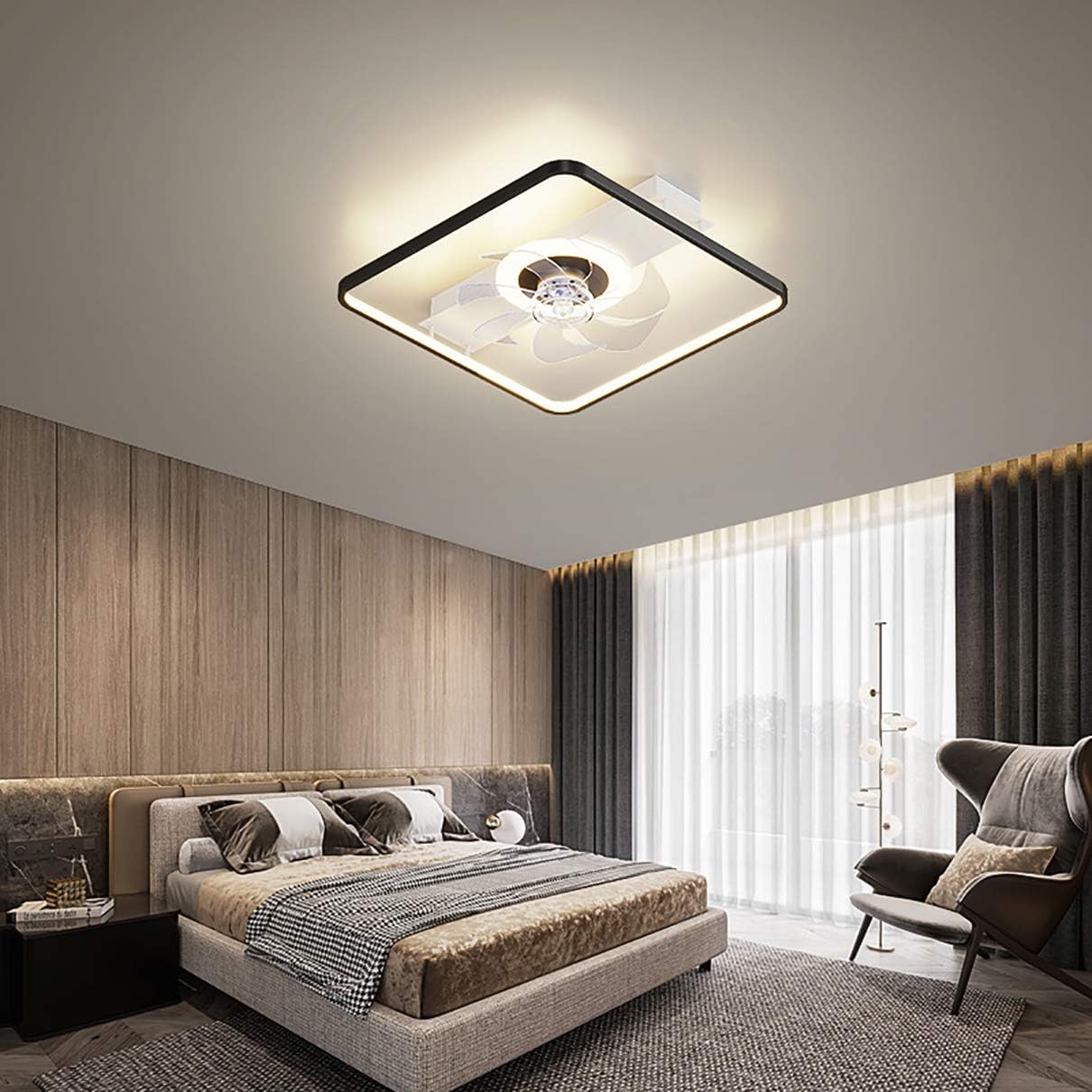 YUEGOO Ceiling Fans with Lamps,Modern Led Ceiling Fan with Light and Remote Control Quiet 3 Speeds Dimmable Bedroom Fan Ceiling Light with Timer Living Room Ceiling Fan Light/Black