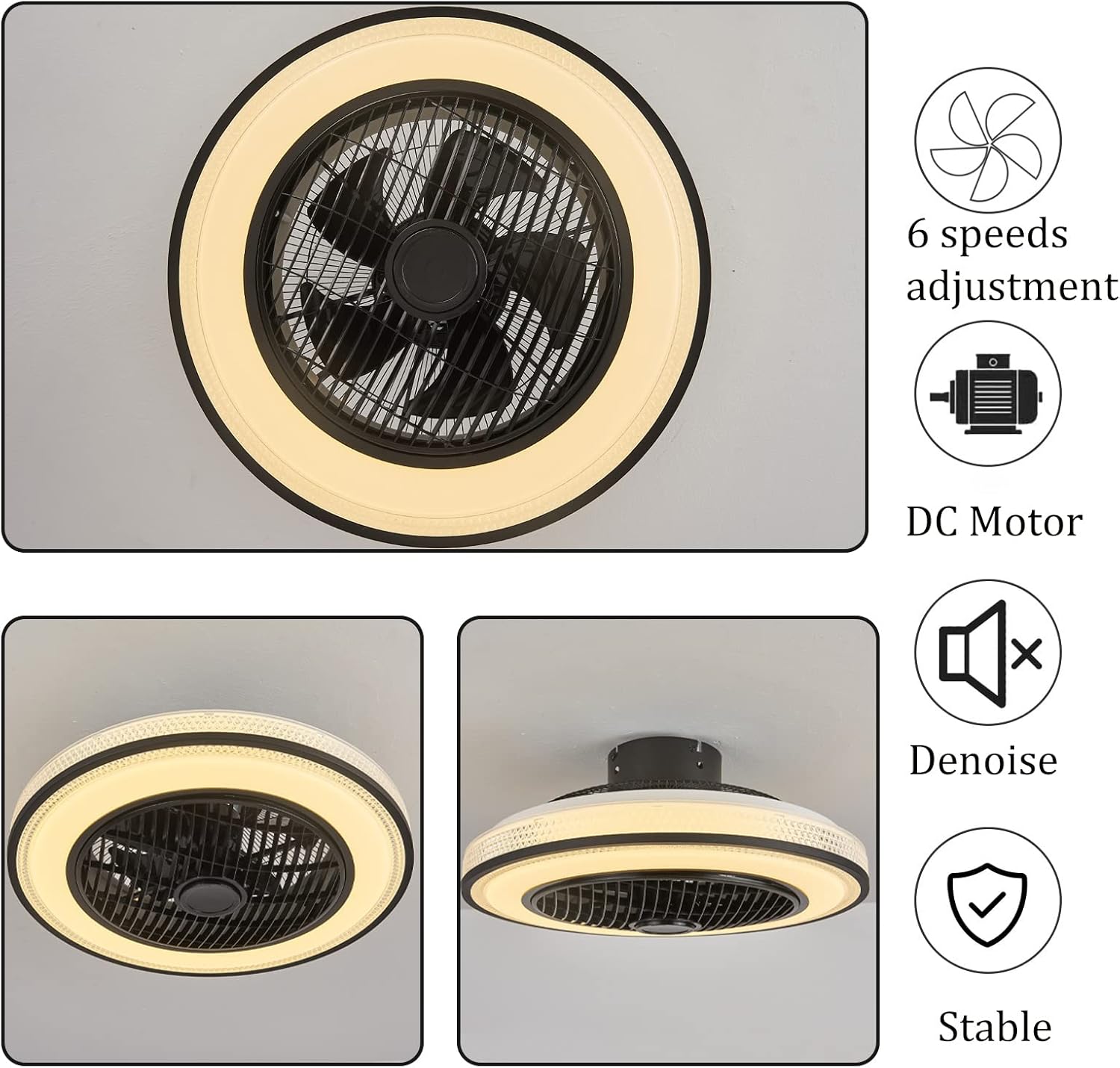 YUEGOO Ceiling Fans with Lamps,Silent Ceiling Fan with Light and Remote Control Adjustable 6 Wind Speeds 3 Colour Lights for Living Room Bedroom Winter/Summer Function with Timer App