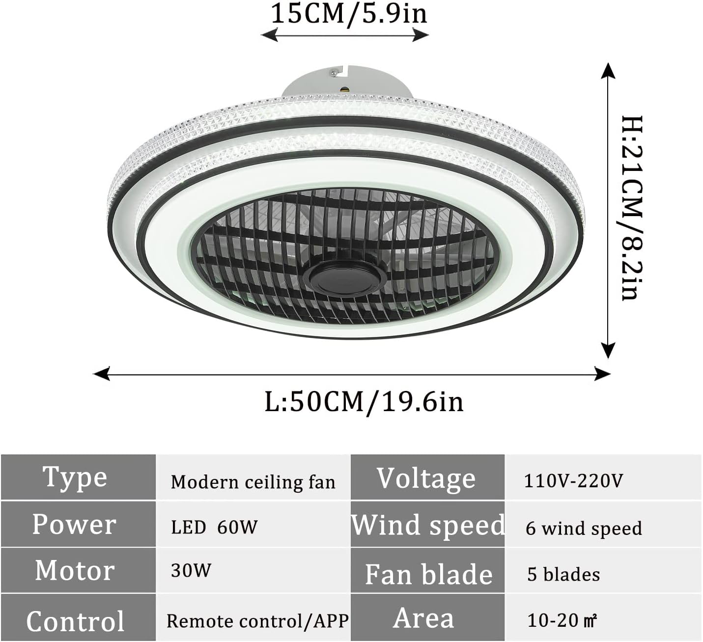 YUEGOO Ceiling Fans with Lamps,Silent Ceiling Fan with Light and Remote Control Adjustable 3-Colour Light Modern Design with Timer App for Living Room Bedroom Winter/Summer Function-B/B